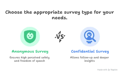 Perceived Safety: Anonymous surveys are high — people speak freely. Confidential surveys are medium — depends on how much they trust the system.