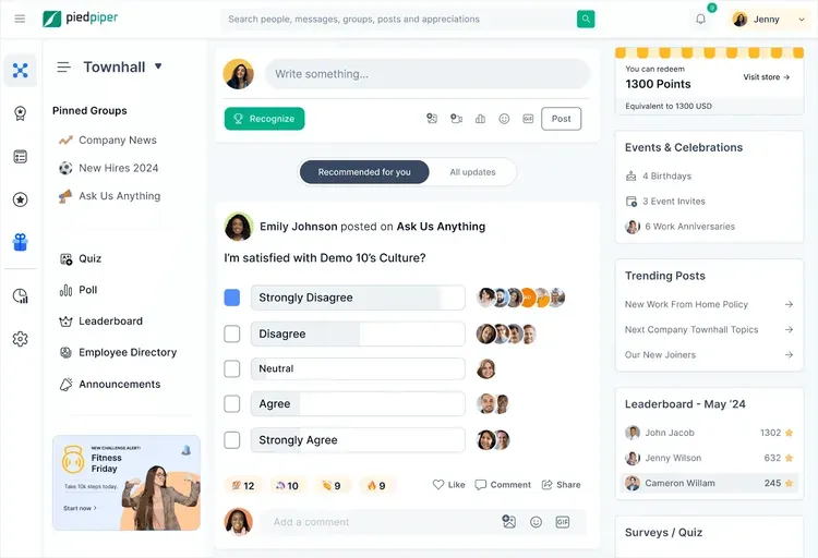 Empuls uses gamified elements to infuse organizational culture with a creative touch on staff engagement. To keep teams engaged and inspired, it combines social technologies with incentives, questionnaires, and feedback channels. Empuls is an excellent choice if your company wants to use engaging, interactive HR technology to encourage teamwork and raise morale.